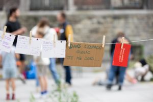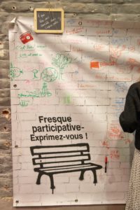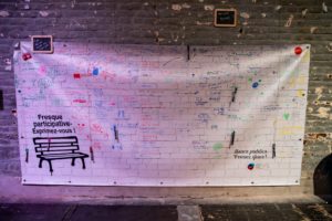 Certains groupes poursuivent encore le travail et de nouvelles créations verront encore le jour, dans les semaines ou mois à venir. D’autres ont réalisé un banc qui a pris sa place dans une rue, sur une place, un quartier. Ainsi, à plusieurs reprises, nous vous donnerons à voir le cheminement de ces réflexions ou les photos des réalisations, plutôt que les œuvres elles-mêmes.